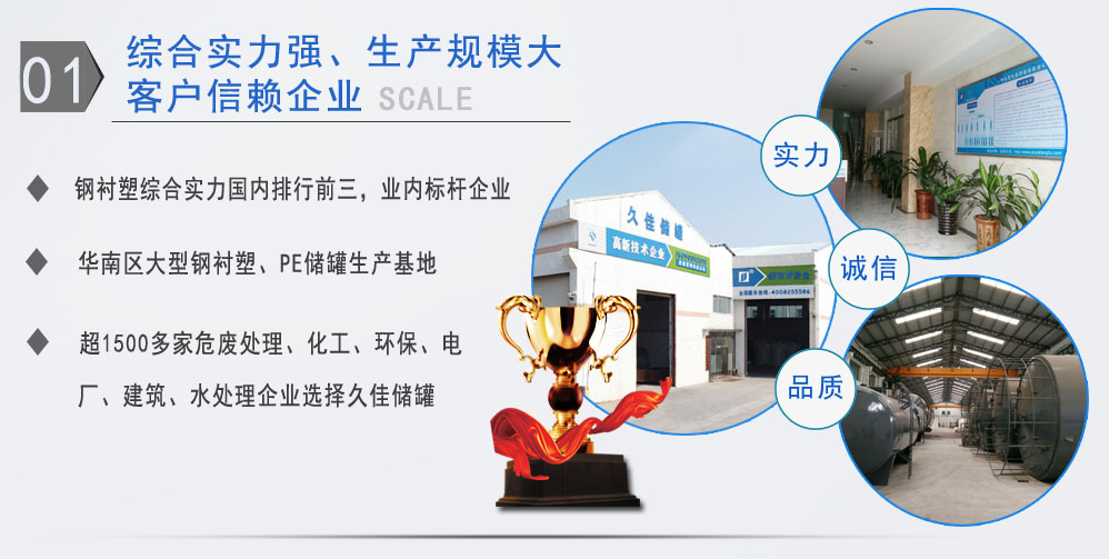 東莞市久佳防腐設(shè)備有限公司是華南地區(qū)大型規(guī)模的防腐環(huán)保儲(chǔ)存設(shè)備制造廠家,公司生產(chǎn)廠房達(dá)8000余平方米,集研發(fā)、生產(chǎn)、銷(xiāo)售于一體,有一支技術(shù)精湛、設(shè)計(jì)能力強(qiáng)的專(zhuān)業(yè)隊(duì)伍。國(guó)內(nèi)領(lǐng)先的生產(chǎn)工藝和完善的檢測(cè)設(shè)備,為產(chǎn)品提供了優(yōu)良的保證。產(chǎn)品廣泛應(yīng)用于石化、環(huán)保、釀造、水處理、化工、醫(yī)藥、食品、煉油、發(fā)電等行業(yè),精益求精,品質(zhì)久佳!